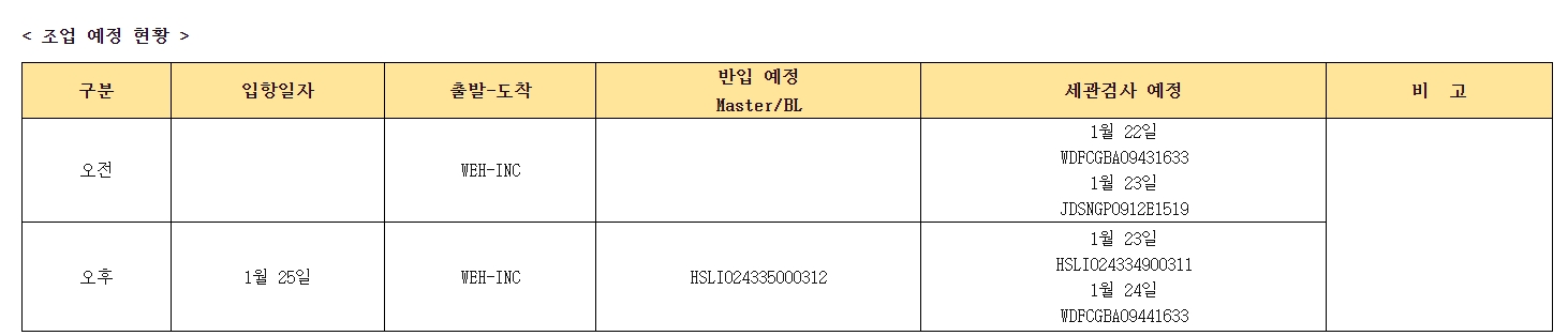 금일 23 , 24일 입항건 작업예정입니다.