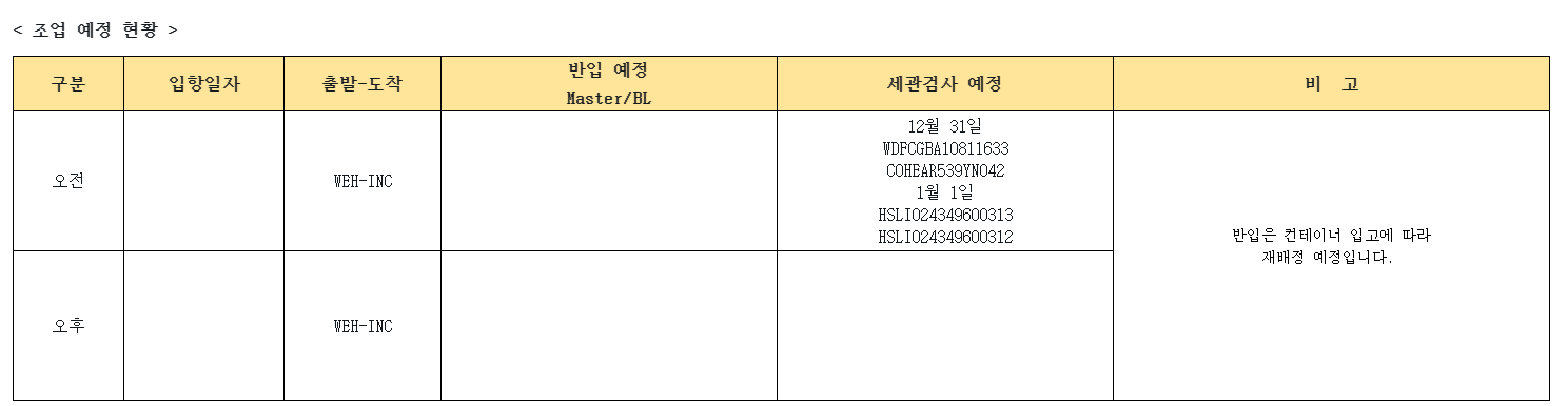 31일 입항건도 작업예정이나 뒷순번 컨테이너는 익일 마무리될수도 있습니다